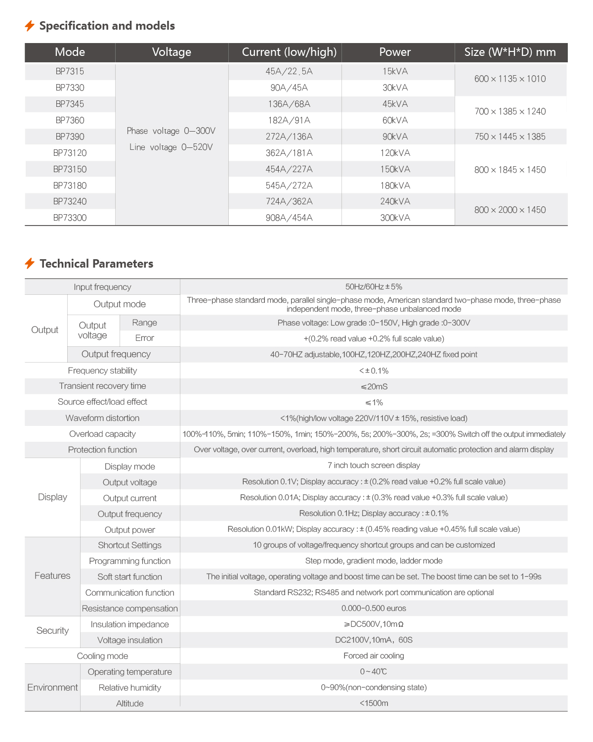 The BP7 series AC variable- frequency power supply is a highperformance power supply that can simulate the voltage/frequency of electrical grids around the world. It is suitable for R&D testing and production testing in industries such as home appliances, motors, power tools, the military industry, and aerospace.