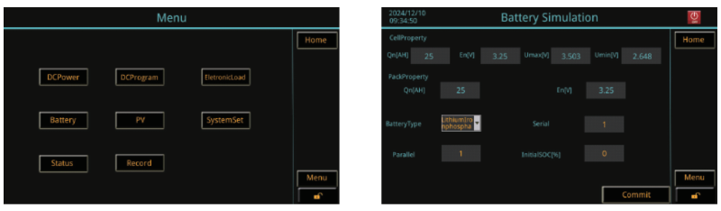 The WB3000 series high- frequency bidirectional DC test power supply has a DC programming function to meet customers' programming needs for voltage and time. The battery simulation function has five common battery types built in. Users can select the battery type (lithium iron phosphate, ternary lithium, lithium manganese oxide, lithium cobalt oxide, lead- acid battery, etc.), set the battery series connection, parallel connection, and initial SOC; it supports customers to customize five battery types and can store customized IV curve data, which can be directly called for operation output when needed.